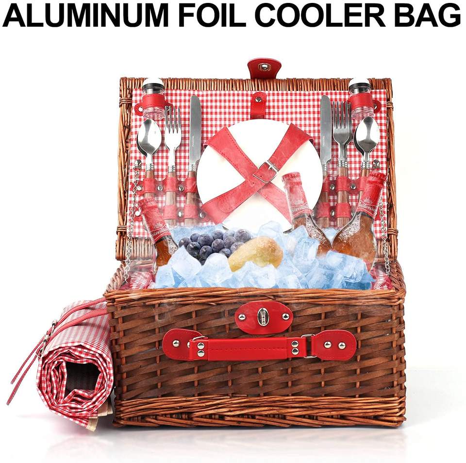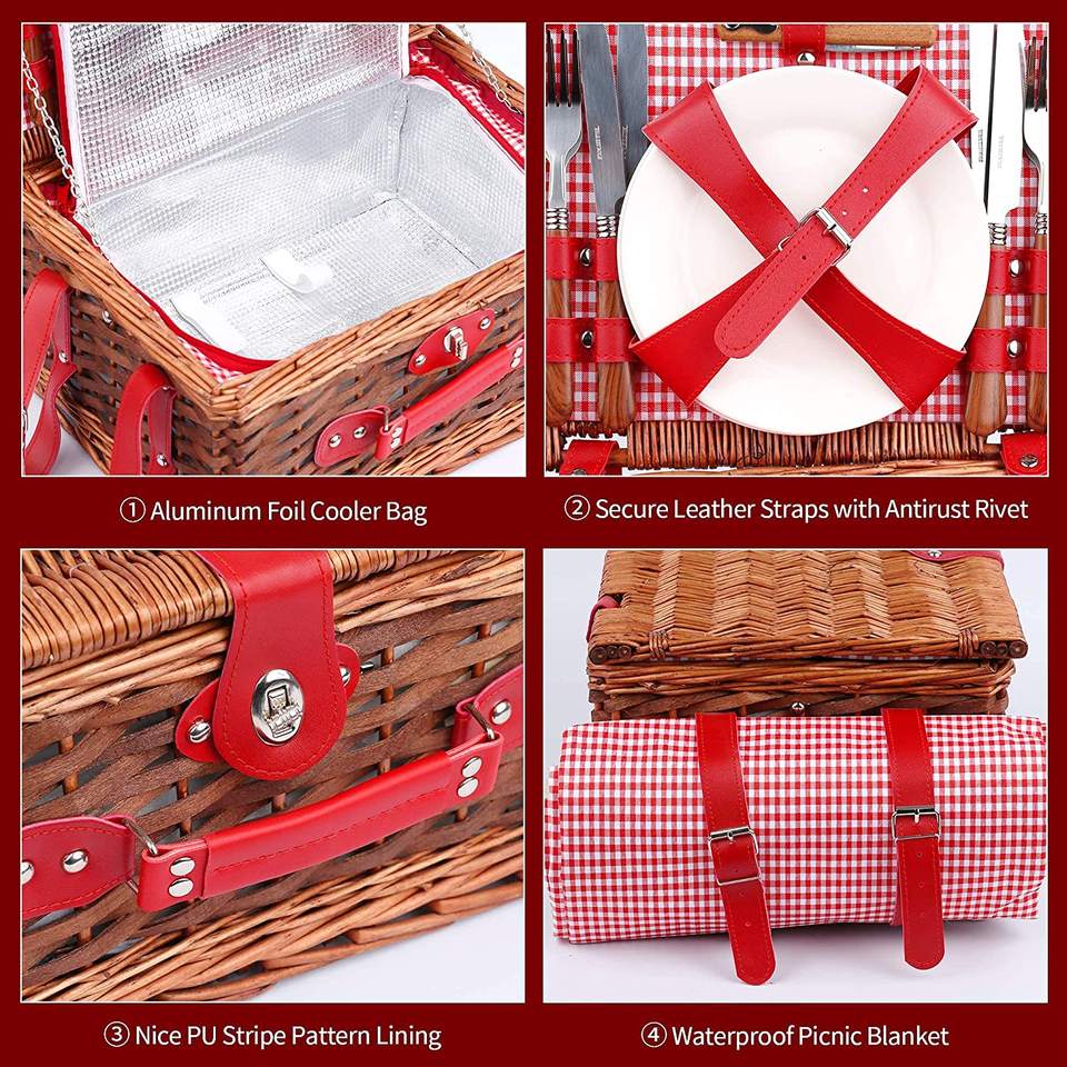 Cesta de Picnic de Mimbre Natural Color Rosa y Rojo en Venta con Cesta para Muñecas para 2 Personas