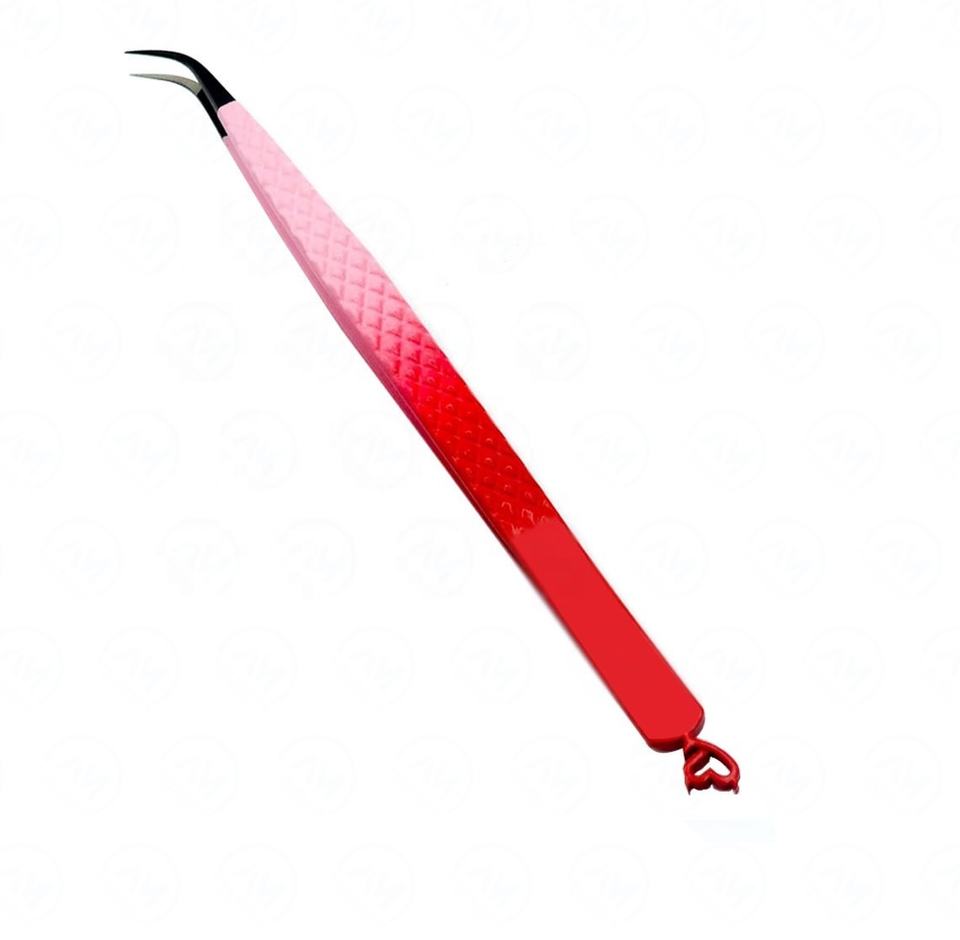 Pinzas para Pestañas con Degradado Rosa Rojo, con Dije de Corazón y Agarre de Diamantes, Herramienta para Volumen de Pestañas