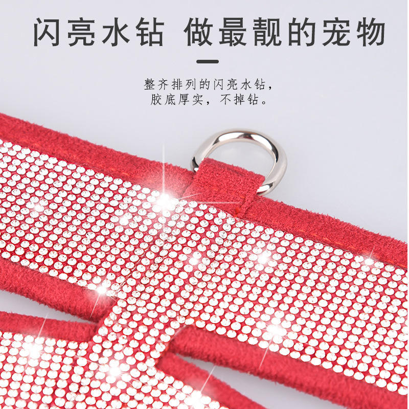 Arnés de pecho para mascotas con diamantes de imitación rosas y correa para pasear perros, ajuste cómodo