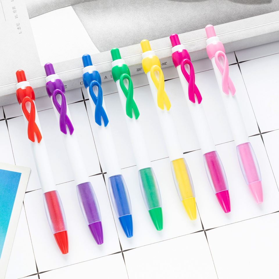 Bolígrafo de plástico promocional con cinta rosa para mujeres y niñas, accesorios de regalo para concientización sobre el cáncer de mama