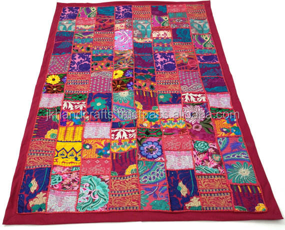 Tapiz de Pared Hecho a Mano con Diseño de Sari Rosa, Decoración de Pared
