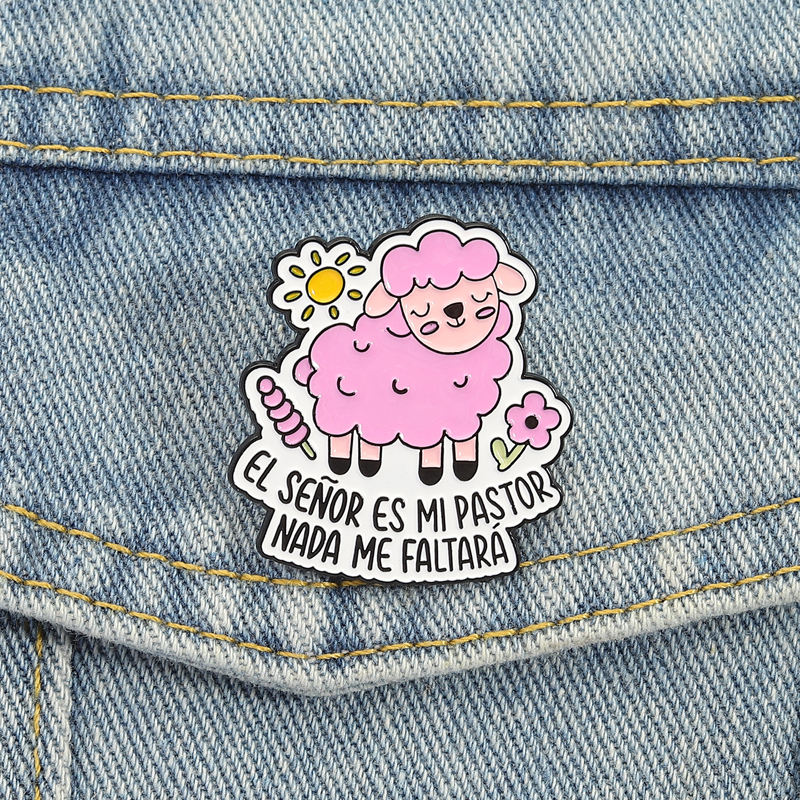 Pin de esmalte de oveja rosa con temática de Jesús, broche de solapa, insignia, joyería, regalo, venta al por mayor - EL SENOR ES MI PASTOR NADA ME FALTARA