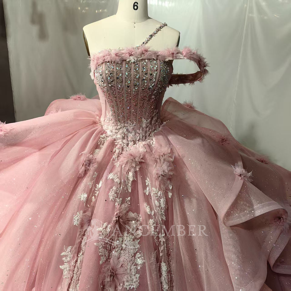 Vestidos de Fiesta de Gala de Princesa con Cola de Capilla, Escote Bardot, Estilo Formal, para Quinceañera, Dulces 16, con Apliques y Pedrería de Cristal