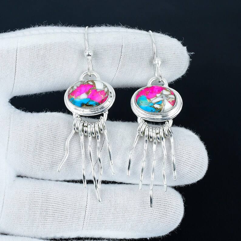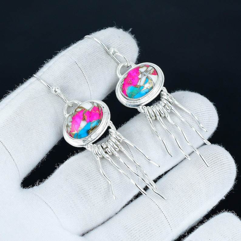 Palabra clave:Pendientes de Turquesa con Concha de Ostra Espinosa Rosa y Brillantes Piedras de Turquesa