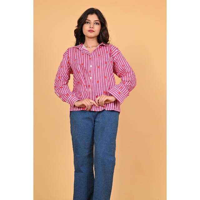 Blusa de Manga Larga de Algodón para Mujer, con Estampado de Corazones a Rayas Rosas, Ecológica, Transpirable, Estilo Casual Chic, Regalo para San Valentín