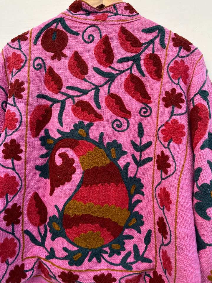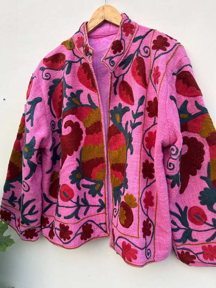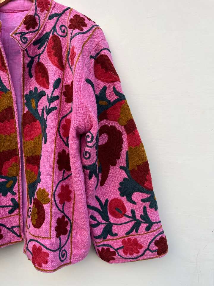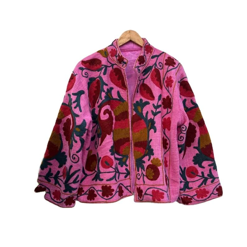 Chaqueta Rosa Suzani Hecha a Mano, Chaqueta Corta, Abrigo de Terciopelo, Blazer Unisex