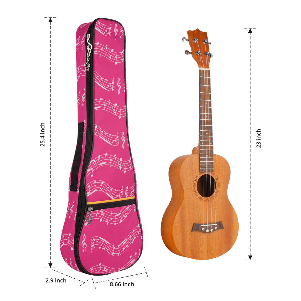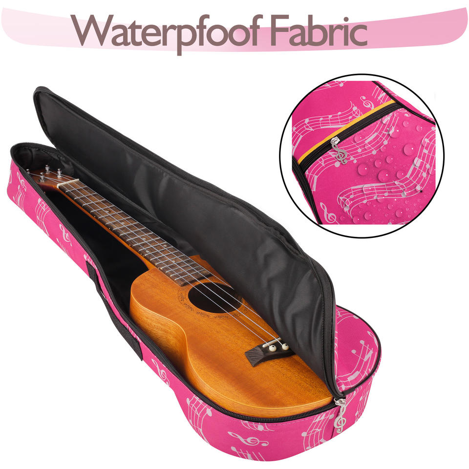 Bolsa rosa para ukelele de 23 pulgadas, bolsa acolchada para ukelele resistente al agua con correas ajustables para concierto, soprano, tenor