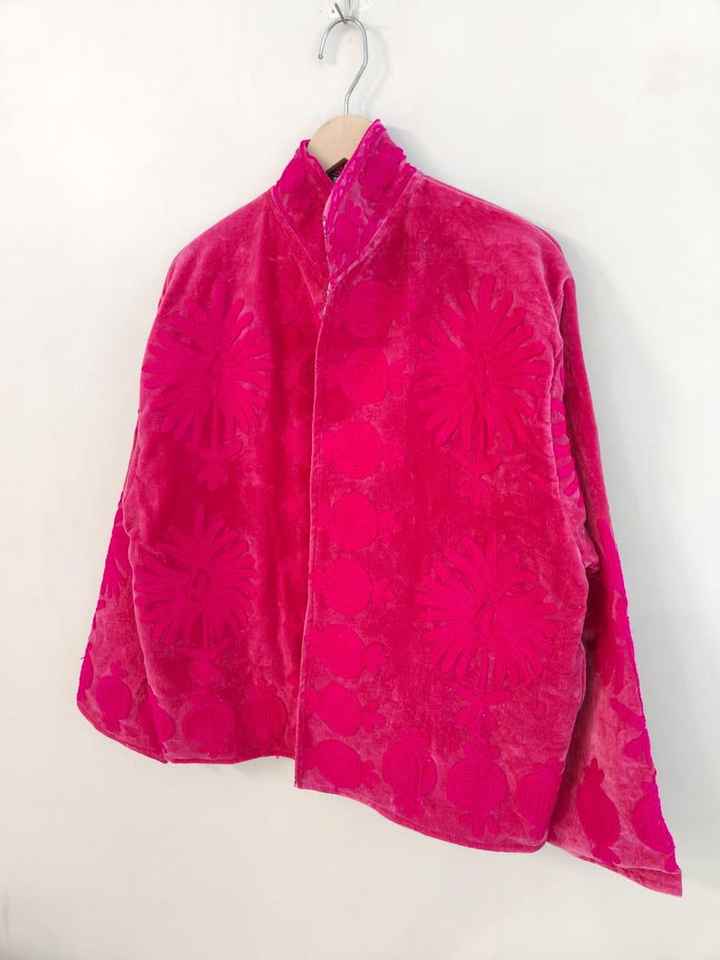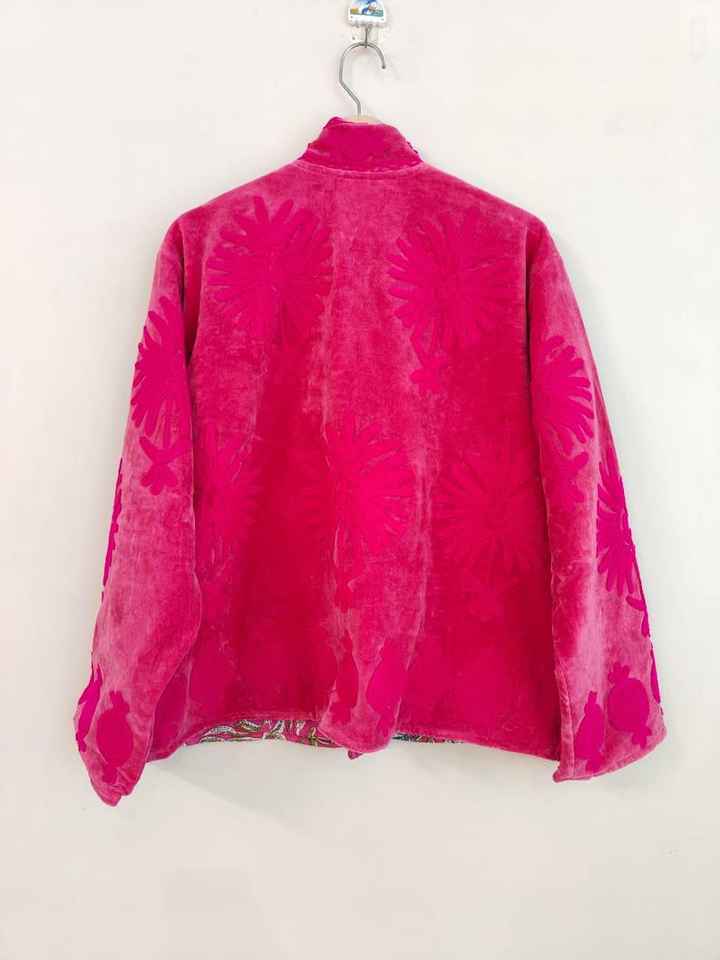 Chaqueta de Terciopelo Rosa Bordada a Mano con Arte Floral Folclórico, Estilo Boho Étnico, Abrigo de Invierno para Mujer, Prenda Vintage, Transpirable