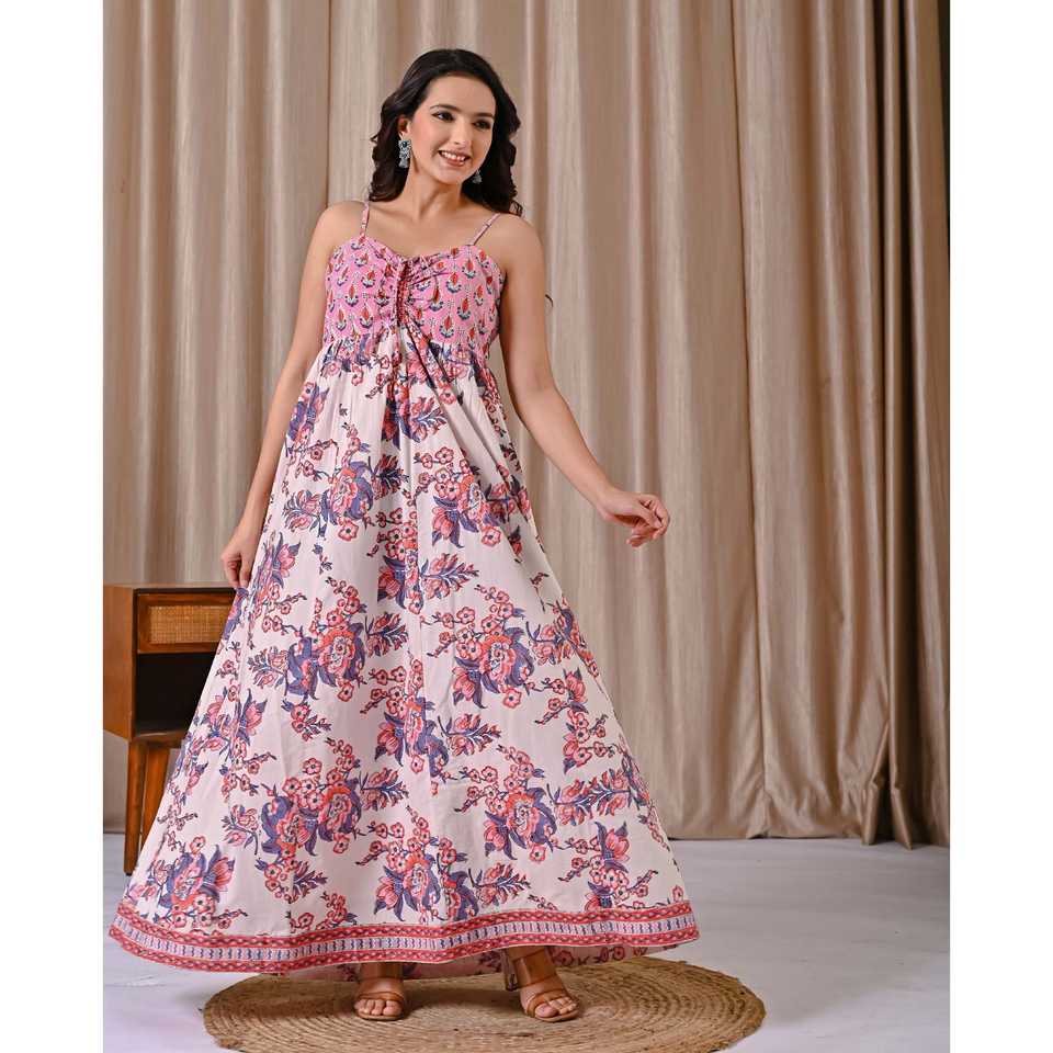 Vestido de Algodón con Estampado de Bloques y Tirantes Finos Rosa y Blanco, Transpirable, Casual, Elegante, Estilo Hippie, Talla Única a 5XL, ODM para Mujer