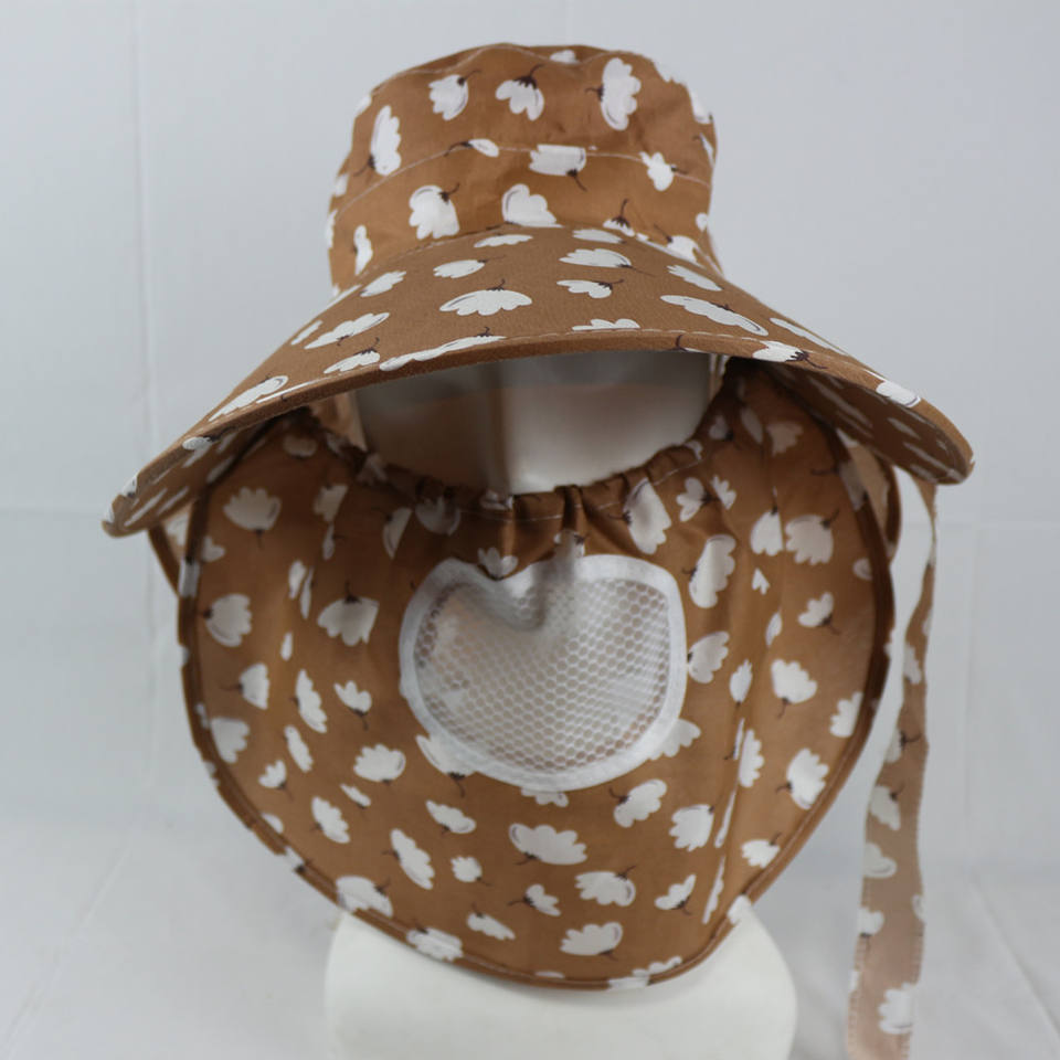 Número de pieza:Máscara de flores en forma de abanico de poliéster y algodón/sombrero para recolección de té