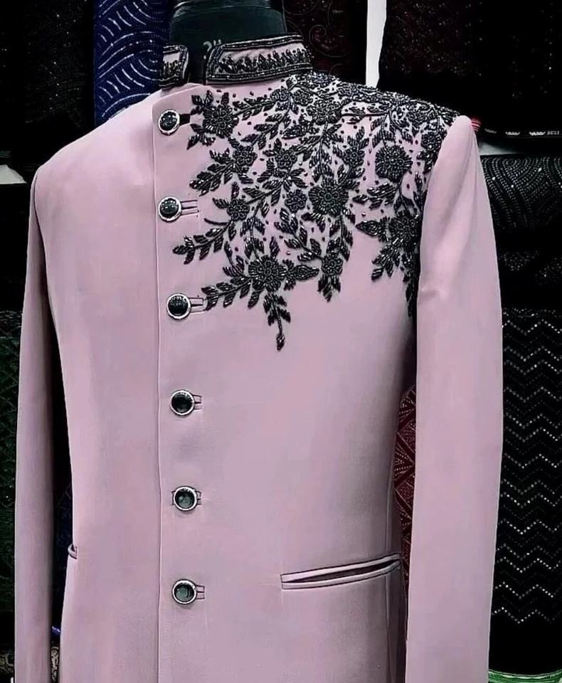 Sherwani Bordado a Mano Rosa para Hombre, Trajes de Príncipe Bordados, Trajes de Boda, Corte Entallado, Conjunto de 2 Piezas con Blazer y Pantalones