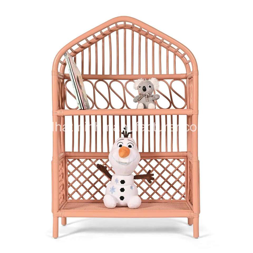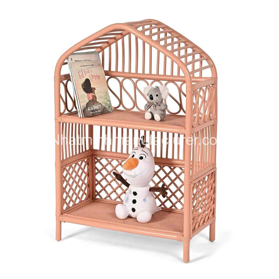 Estante de juguetes rosa para niños tejido con ratán naturalNombre del producto