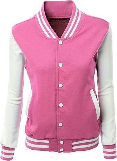 Pink-Varsity-jackets Chaqueta Chicago de manga larga con contraste de color elegante para mujer coreana personalizada