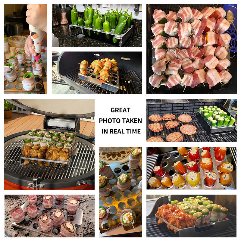 Parrilla de Acero Inoxidable Pinniu para Jalapeños con Orificios de Gran Capacidad para Pimientos Rellenos, Apta para Barbacoa, Ahumador y Horno