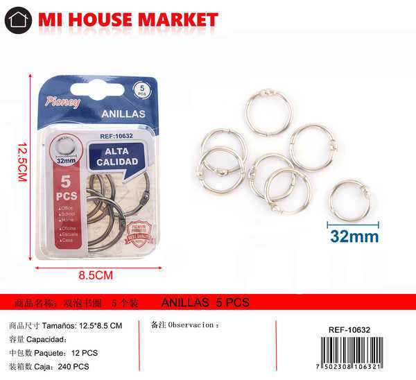 Anillas para libros Pioney, 5 unidades, de metal, para organizar documentos, uso en oficina