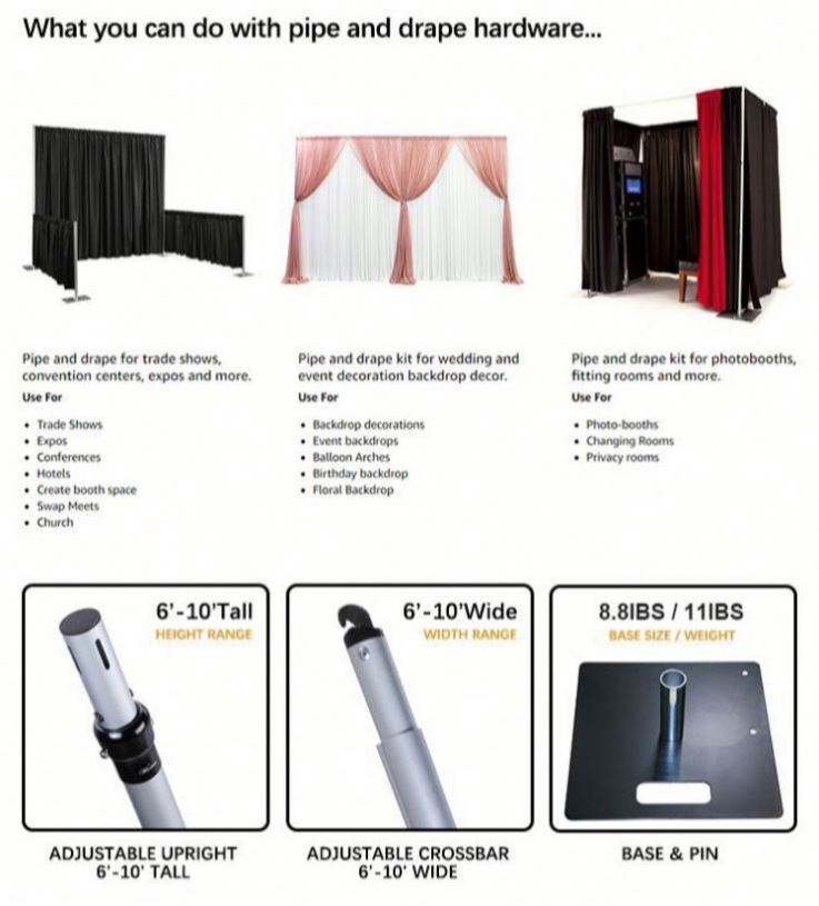 Kit de Cortinas Ajustables de 6 a 20 pies para Eventos y Convenciones, Venta al por Mayor de Kits de Herrajes para Cortinas