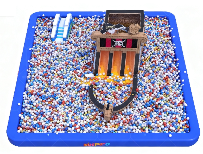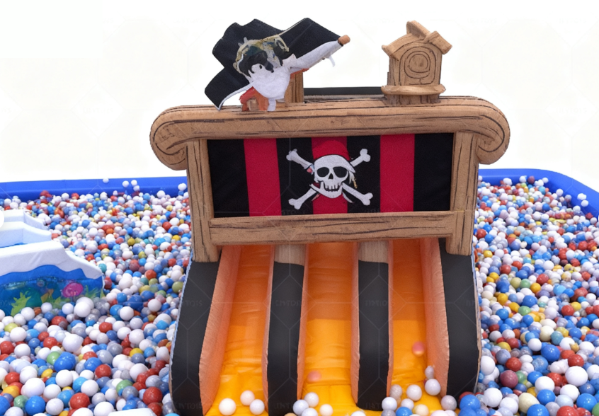 Tobogán Inflable Combinado con Piscina de Pelotas con Diseño de Barco Pirata, Parque Infantil Inflable Comercial con Temática Oceánica para Niños en Interiores