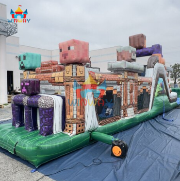 Circuito de Obstáculos Inflable Comercial con Temática de Píxeles - Desafío de Obstáculos de Bloques para Fiestas Infantiles y Eventos al Aire Libre