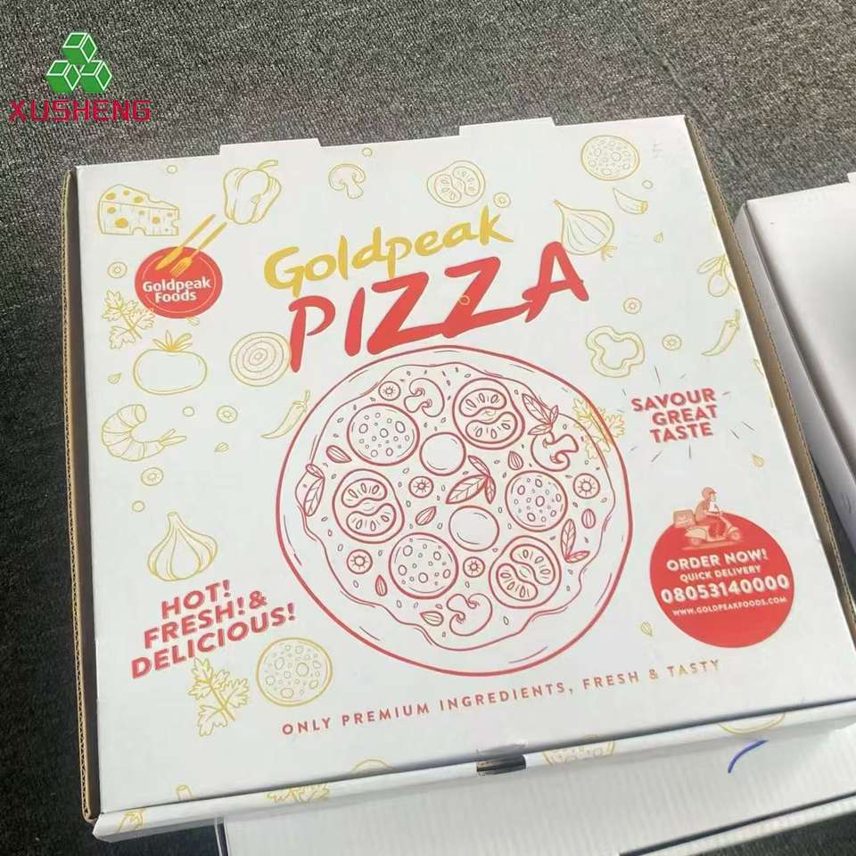 Cajas de Pizza de Papel Corrugado Reutilizables de Todos los Tamaños (9, 10, 11, 12, 14, 18 Pulgadas), Forma Personalizable con su Propio Logotipo