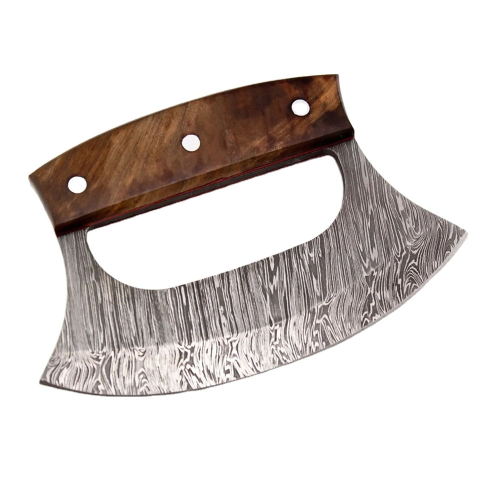 Cortador de Pizza mango de madera personalizado Ulu cuchillo hecho a mano Damasco Chef cocina Ulu cuchillo con Funda de cuero Ulu cuchillo al por mayor
