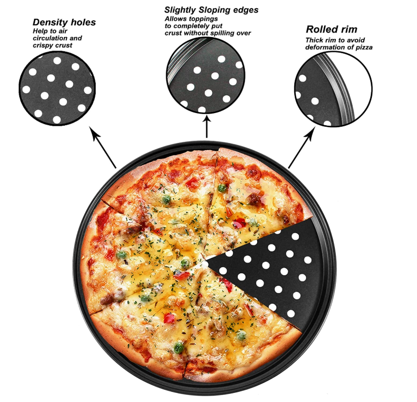 Bandeja para Pizza Perforada de 16 Pulgadas con Orificios para Horno, Gris, Resistente, Ecológica, para Pizza y Tartas