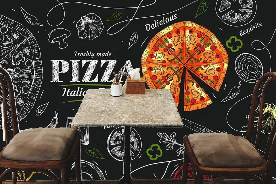Papel Tapiz de Pizzas para Decoración de Paredes de Restaurantes, Murales de Pared Modernos de Seda Impermeables