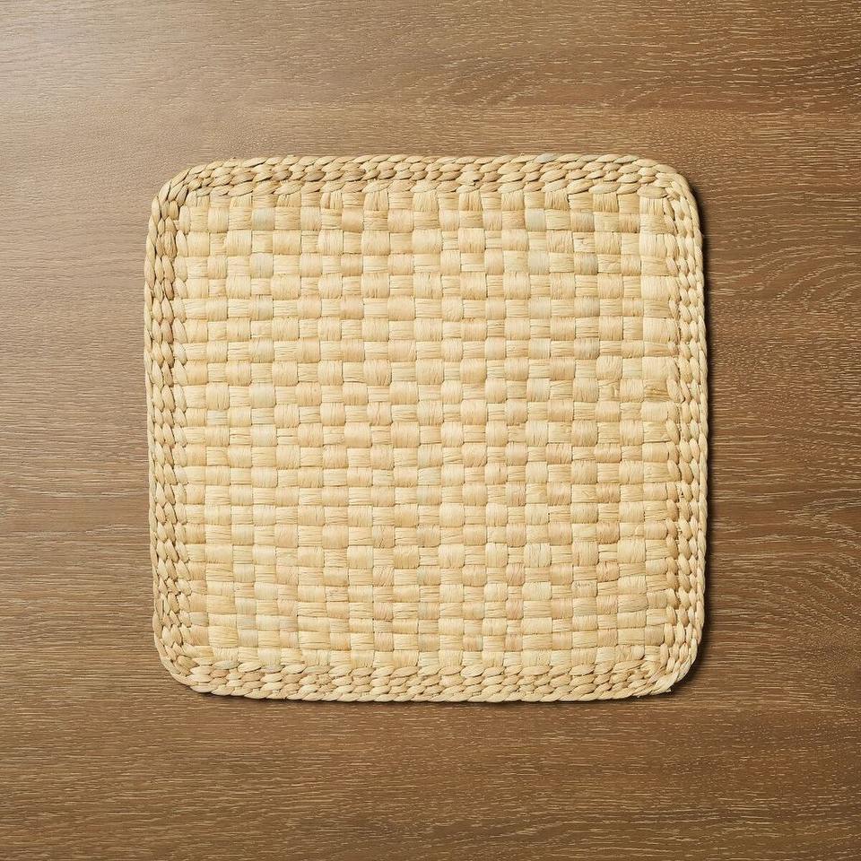 Plaid water hyacinth placemats:Size: D15 inch