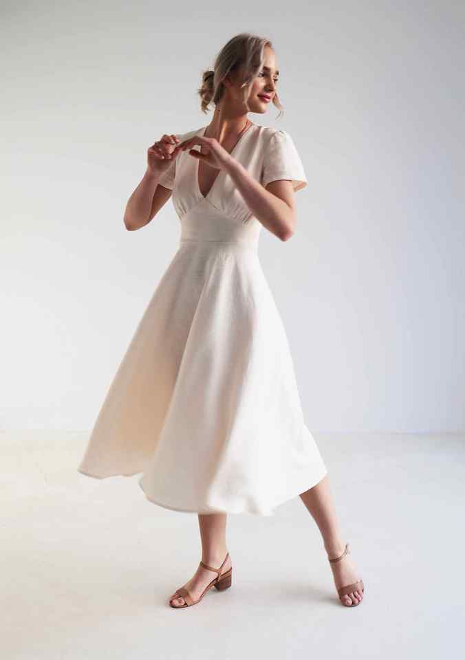 Vestido Midi largo con cinturón de algodón liso para mujer, vestido elegante de moda para mujer, vestido Midi liso de manga corta con cuello en V para mujer