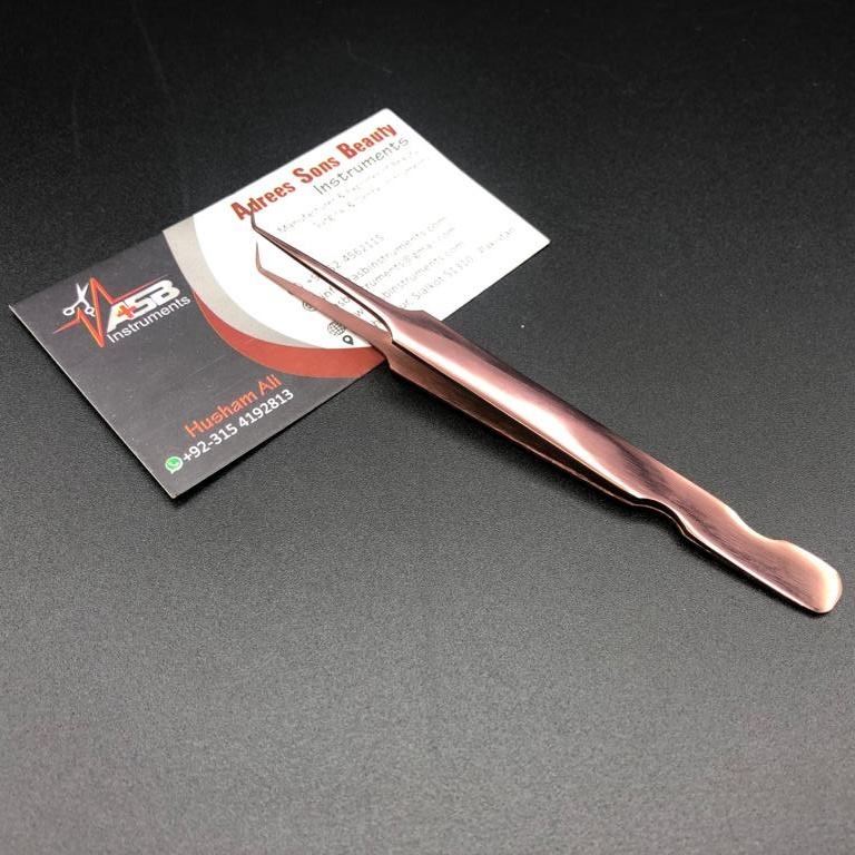 Pinzas de extensión de pestañas con mango liso Logotipo personalizado Oro Rosa Acero inoxidable brillante Punta puntiaguda Estilos de volumen disponibles