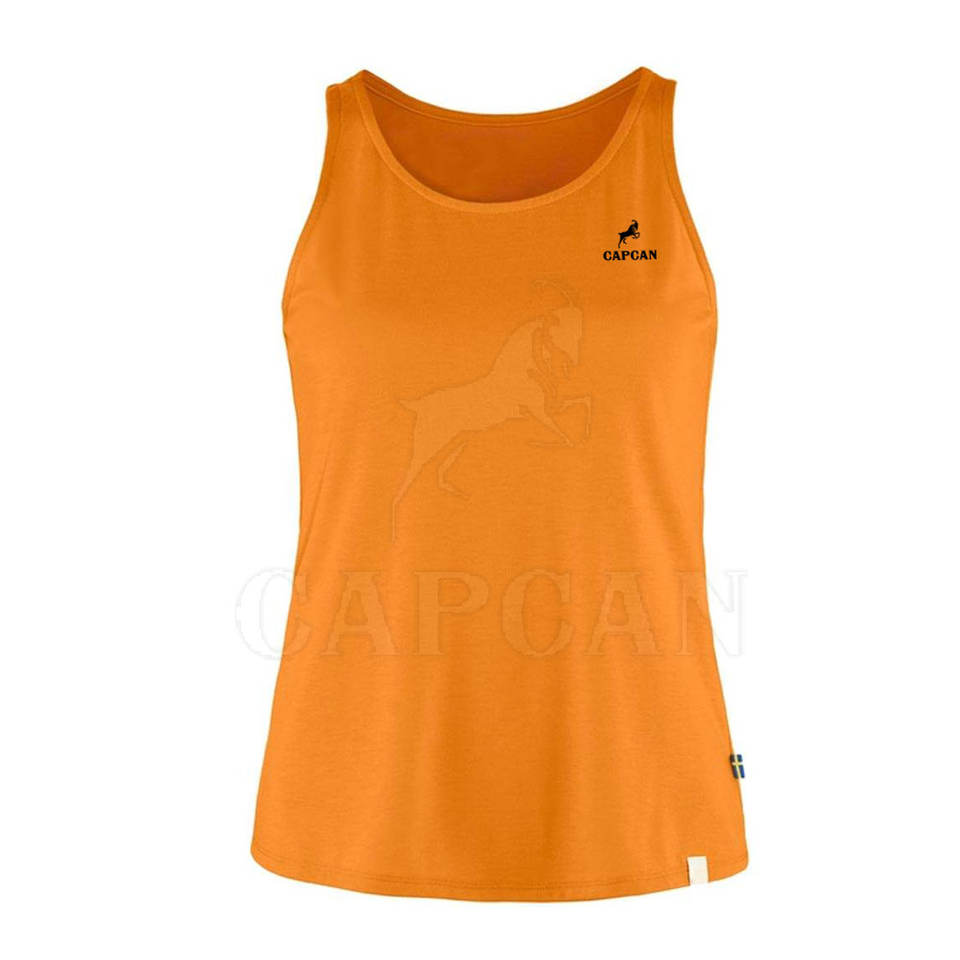 Camisetas sin mangas ajustadas para mujer de tamaño personalizado, tela de punto naranja lisa, camisetas transpirables de Yoga en blanco para niñas