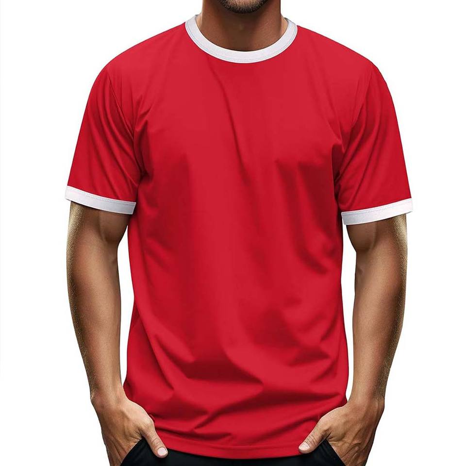 Camisetas Lisas de Algodón Peinado 100% con Cuello Redondo y Manga Vintage para Hombre