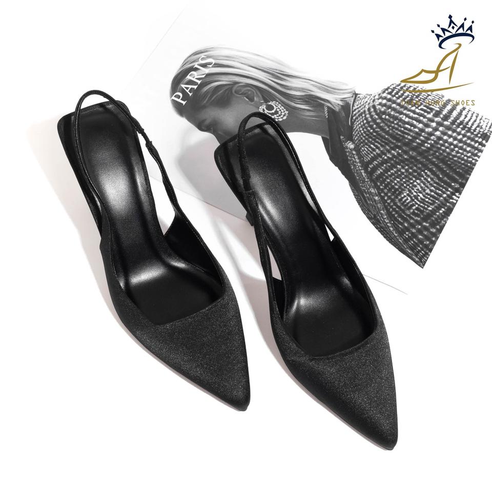 Plain Slingbacks Trendy Peso ligero OEM ODM Stiletto Heel Premium Paper PU & Satin Vibram Toe Box 7cm Zapatos de mujer de Vietnam