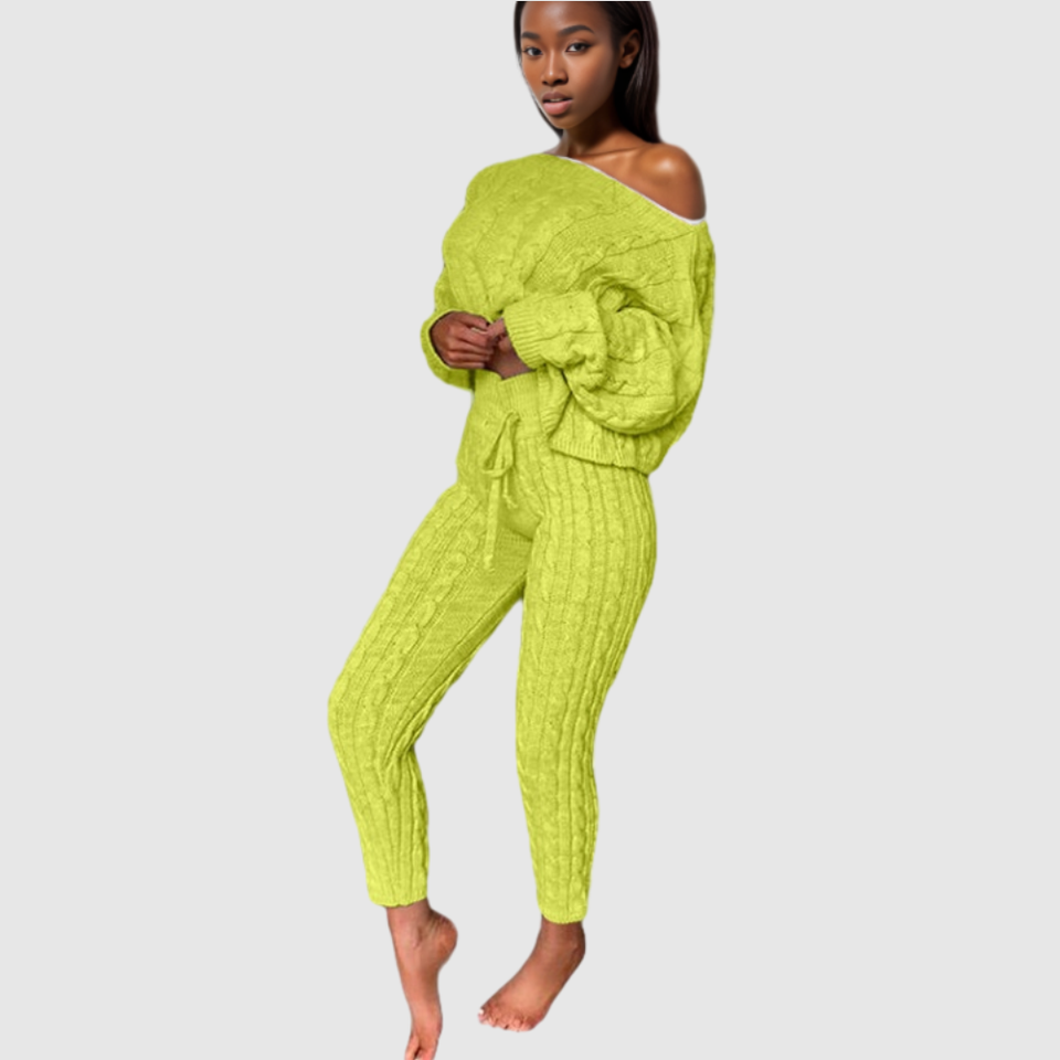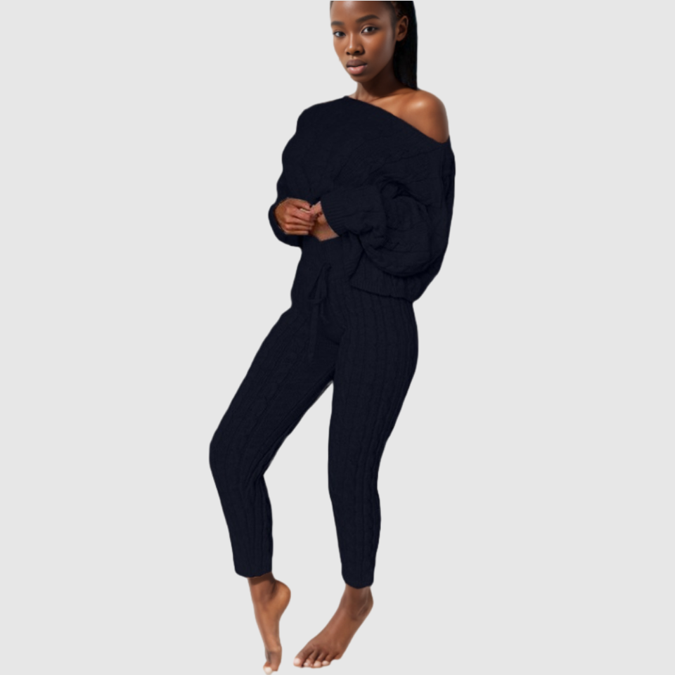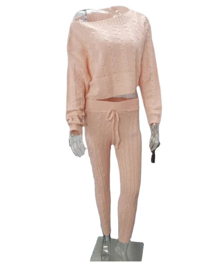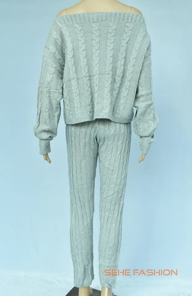 Suéter de Color Sólido Liso, Conjunto de Dos Piezas de Invierno con un Hombro Descubierto, Ropa para Mujer