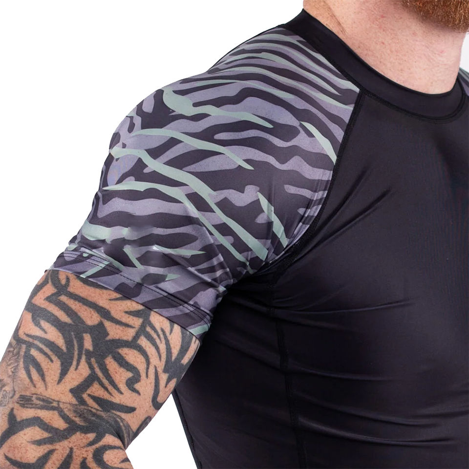 Plain in Stock Durable Men Rash Guards Wholesale Prices Long Sleeve Fitness Custom Men Rash Guards Polyester Spandex Material