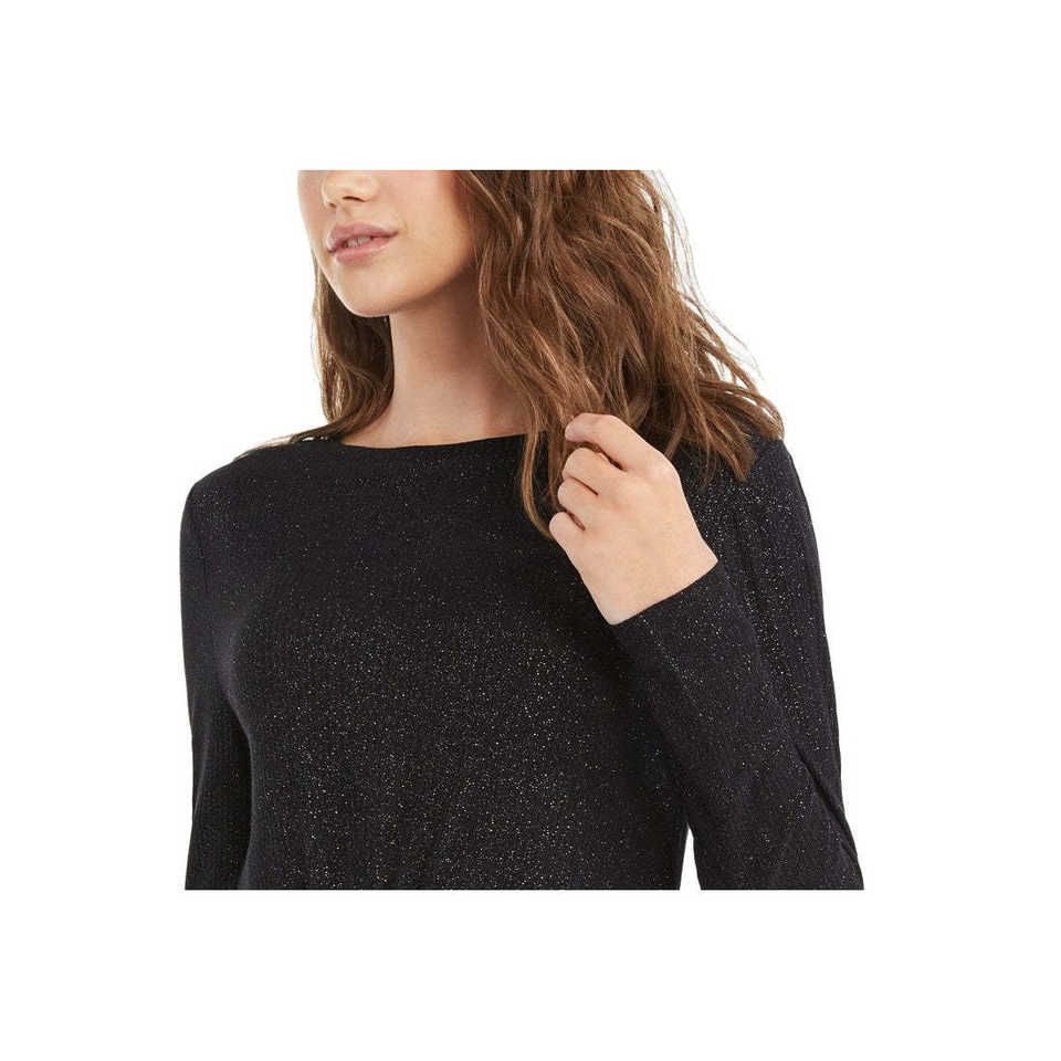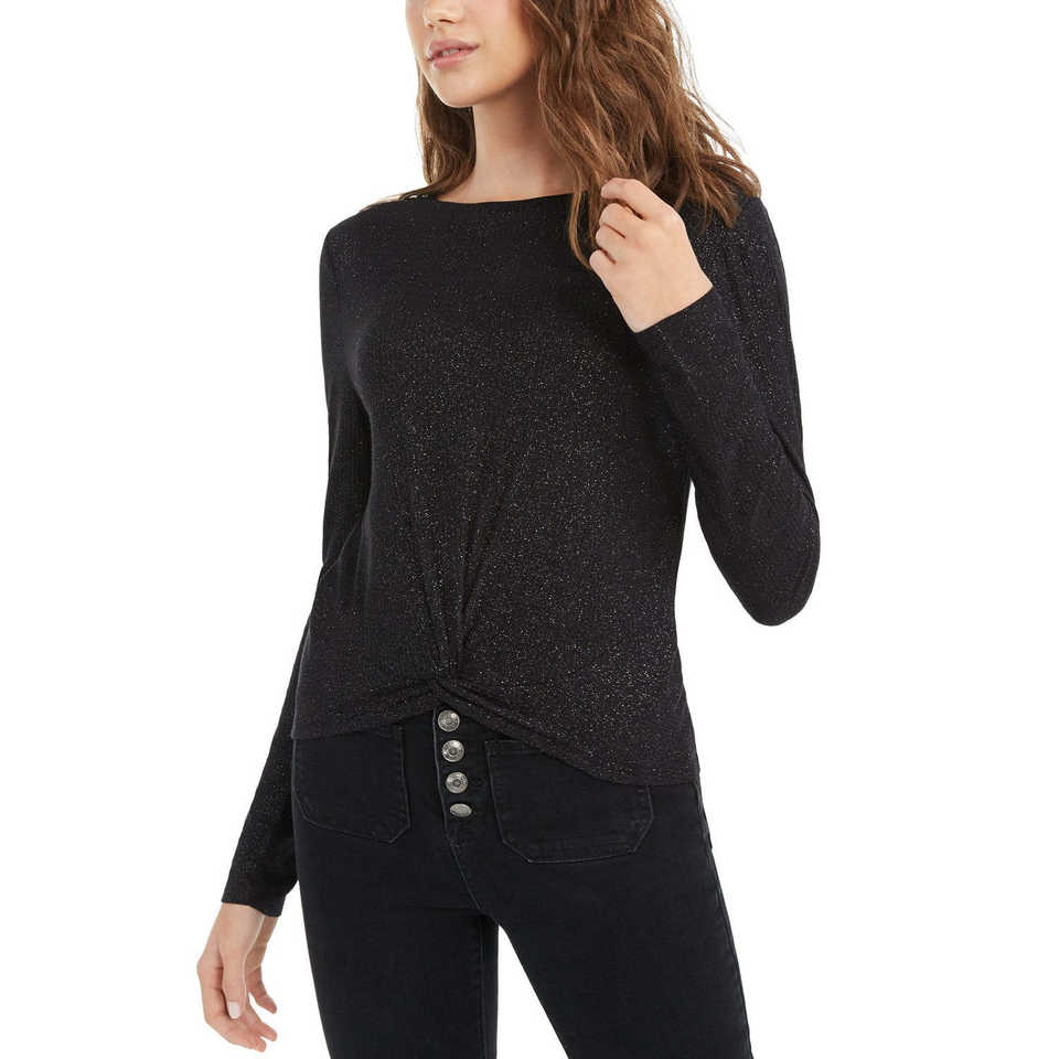 Top acanalado brillante para niña Planet Gold con diseño frontal retorcido en tejido de punto negro, talla grande