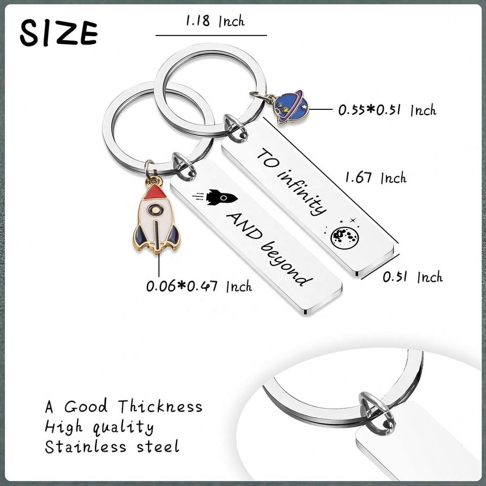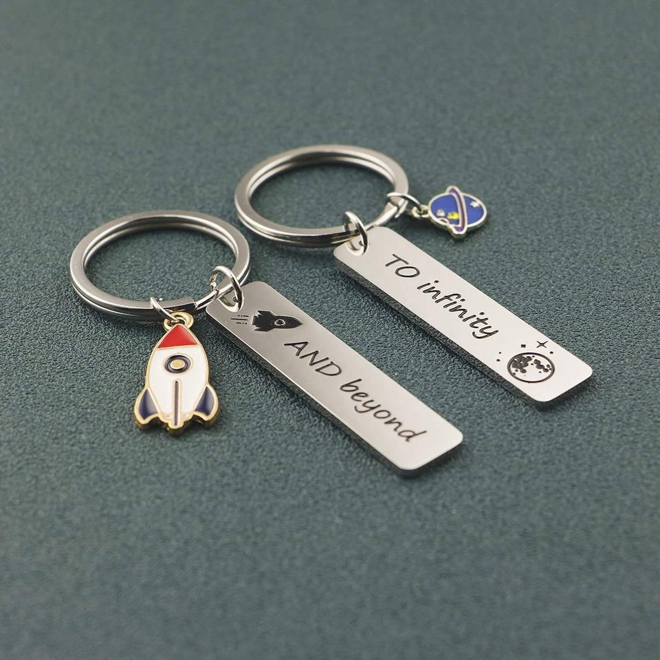 Llavero de planeta, llavero de cohete, llavero 'Te amo hasta el infinito y más allá', llaveros de pareja esmaltados, regalos con dijes, llavero de cohete