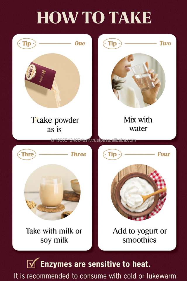 Ingrediente principal:1004000 unidades de enzima, Zinc, Selenio, Vitamina B6, Ácido pantoténico, 21 Probiótico
