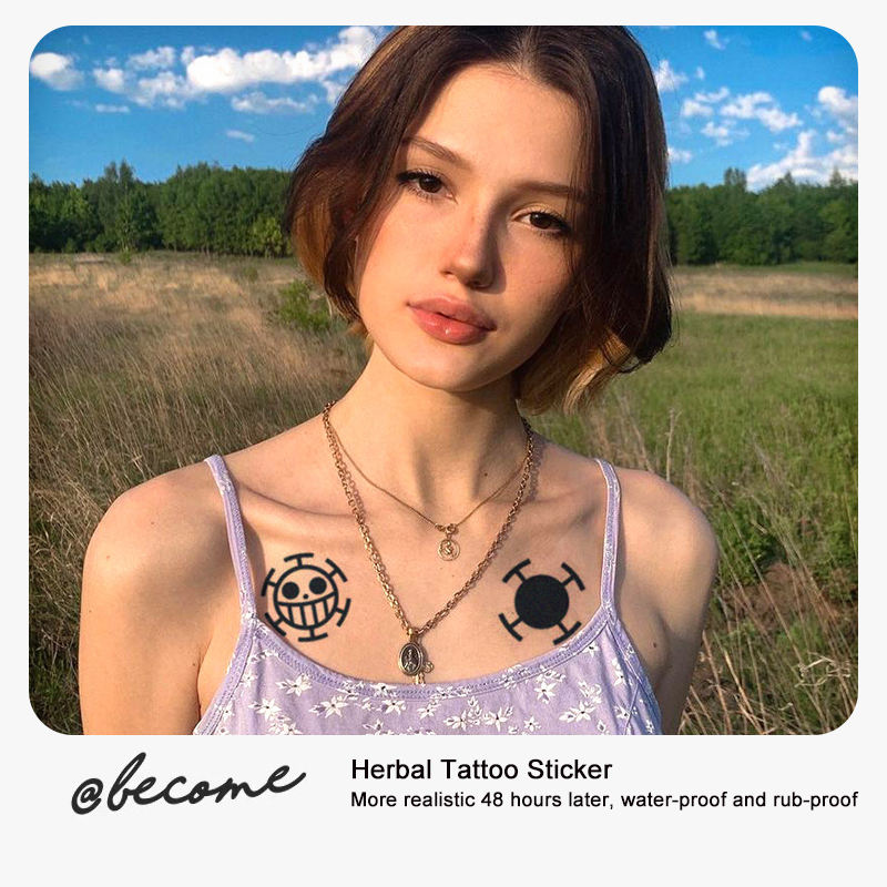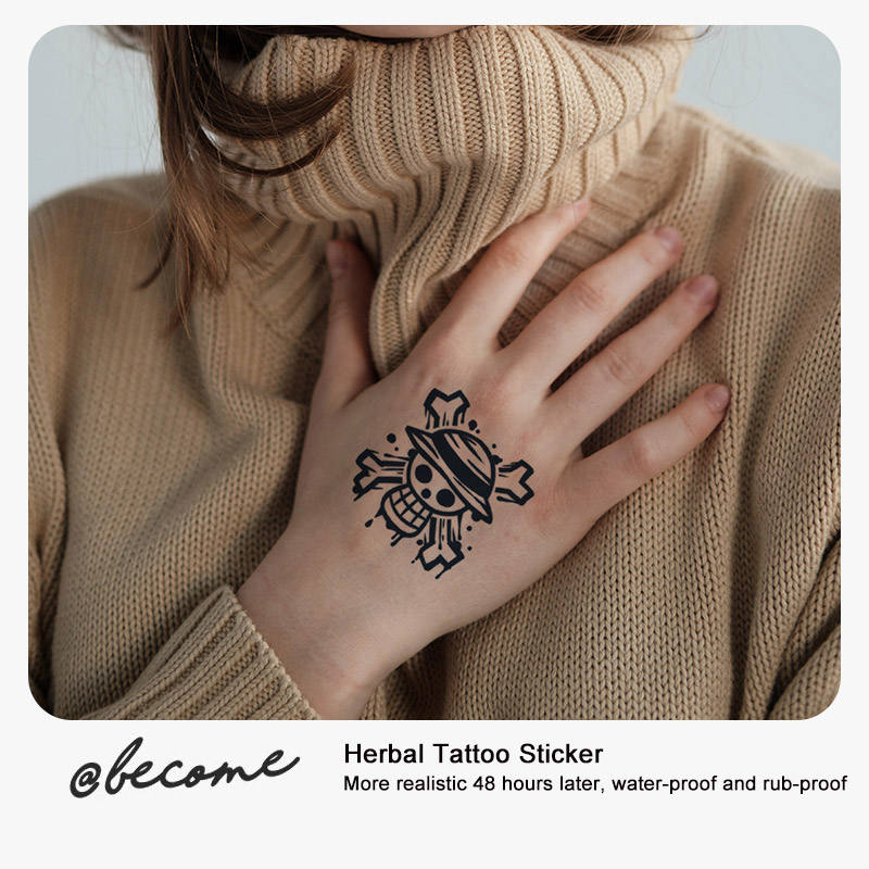 Popular One Piece Anime Luffy's Skull Sign Tatuaje temporal 15 días Diseño de fórmula a base de plantas para brazo trasero Mano negra