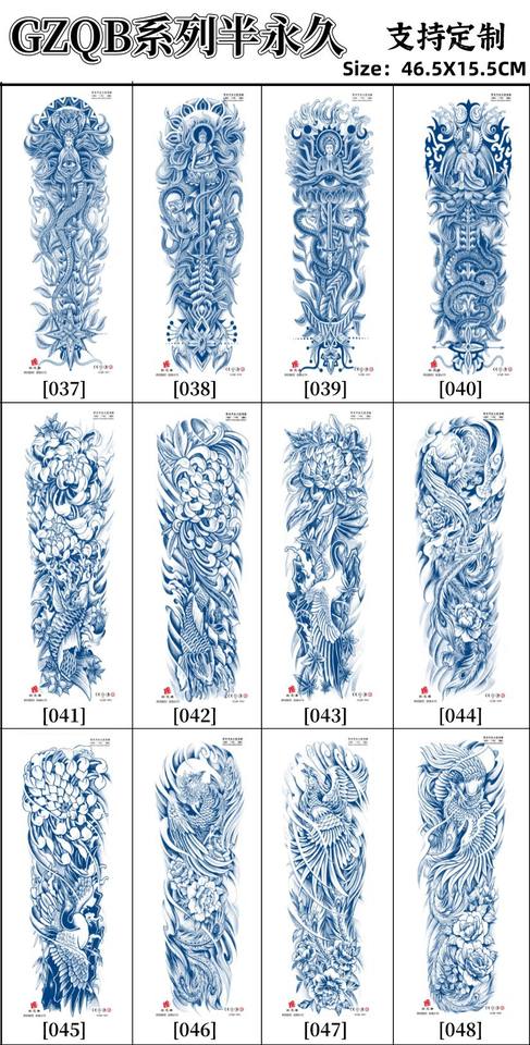 Tatuaje semipermanente a base de plantas, manga completa, adhesivo temporal de 2 semanas