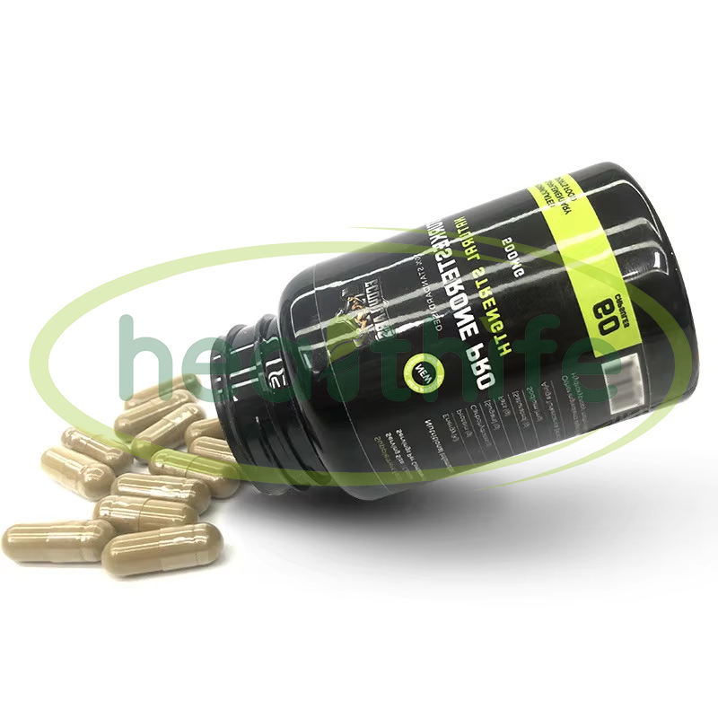 Botella, Tambor, contenedor de vidrio, Cápsulas de Turkesterona por caja con cistosepimento resistente al calor, y el embalaje interior es una bolsa de papel de aluminio y una bolsa de PE.