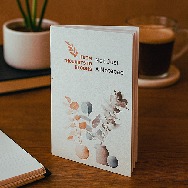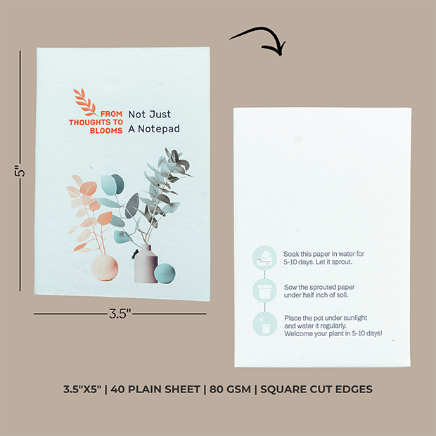 Mini Bloc de Notas Plantable con Encuadernación Cosida, Tamaño B7, 40 Páginas, 80 GSM, Papel Reciclado con Cubierta de Semillas, Regalo Corporativo Ecológico BG21-P BioQ Eco Solution