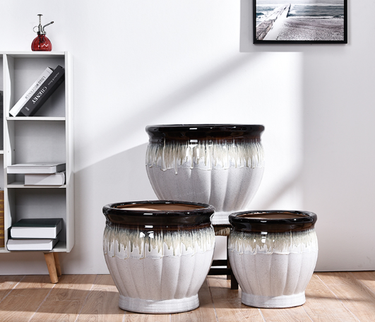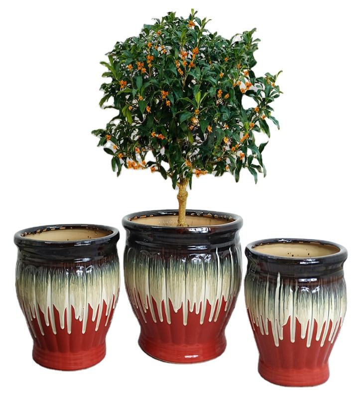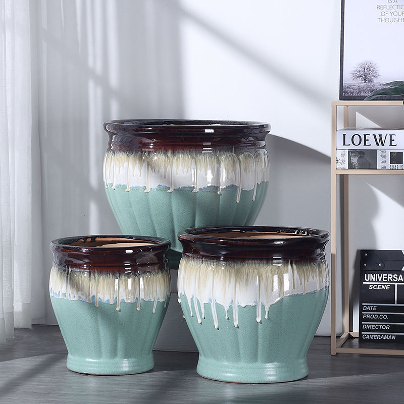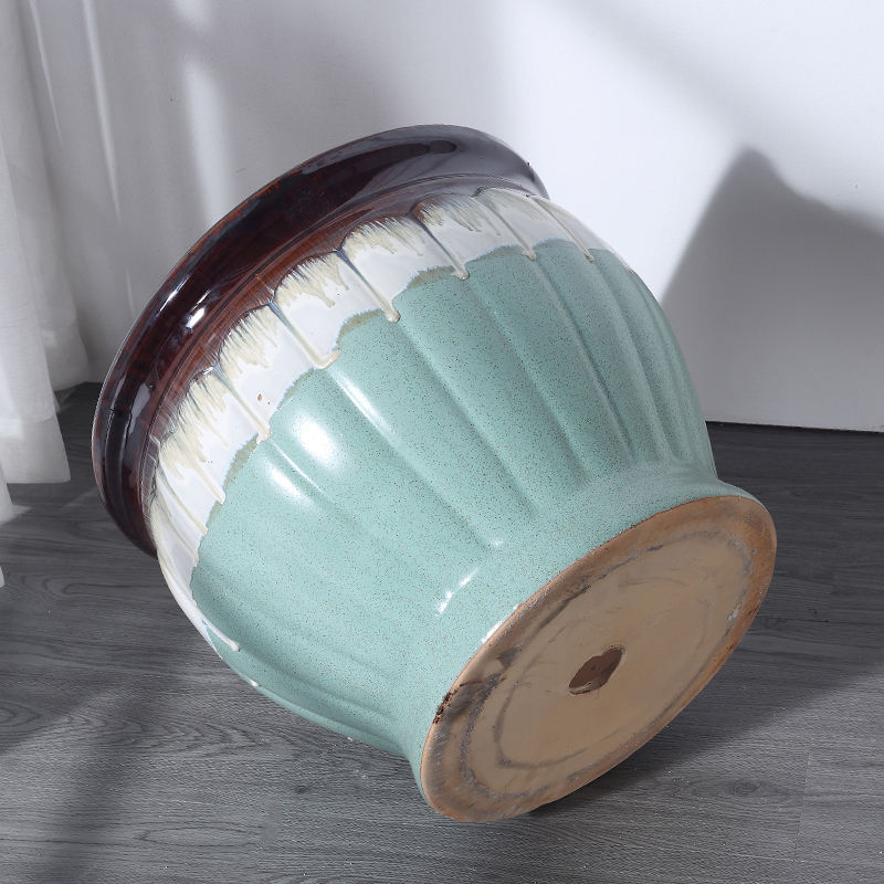 Macetas de jardín de gres de cerámica grande con orificio de drenaje en forma de calabaza para porche hogar Patio cubierta suelo maceta