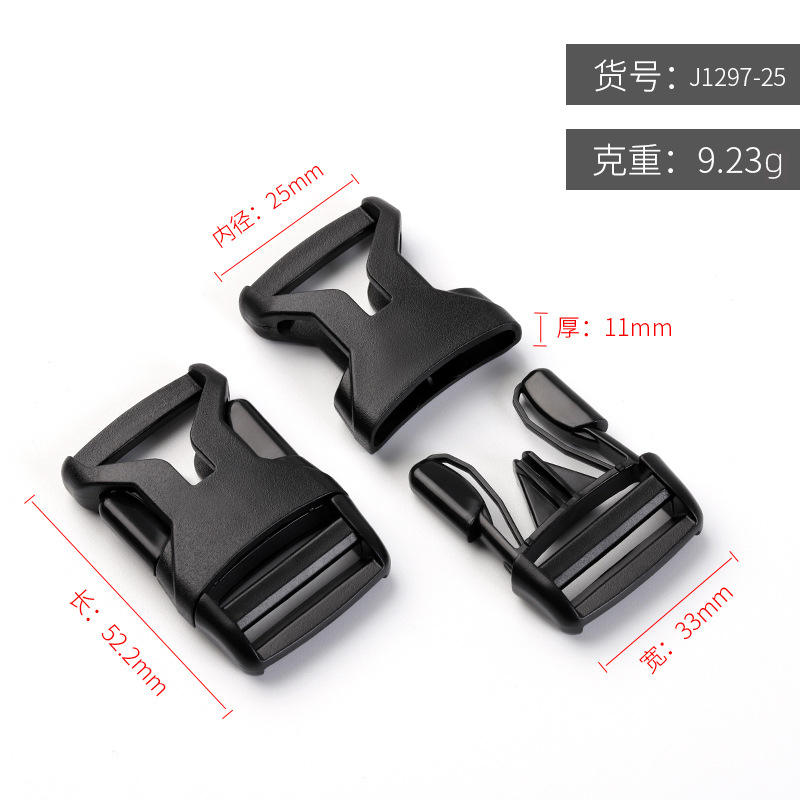Hebilla ajustable de plástico de 25 mm de diámetro interior, color negro, para accesorios de bolsos y mochilas