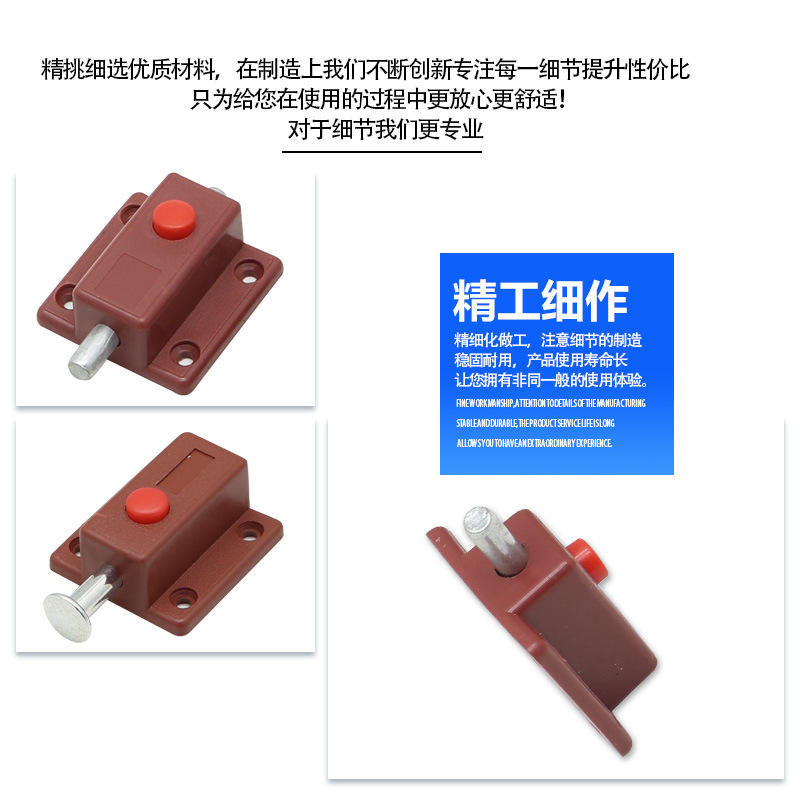 Cierre de botón automático de plástico, color marrón, para puertas de pared de gabinete, fácil instalación, accesorio de hardware de diseño minimalista