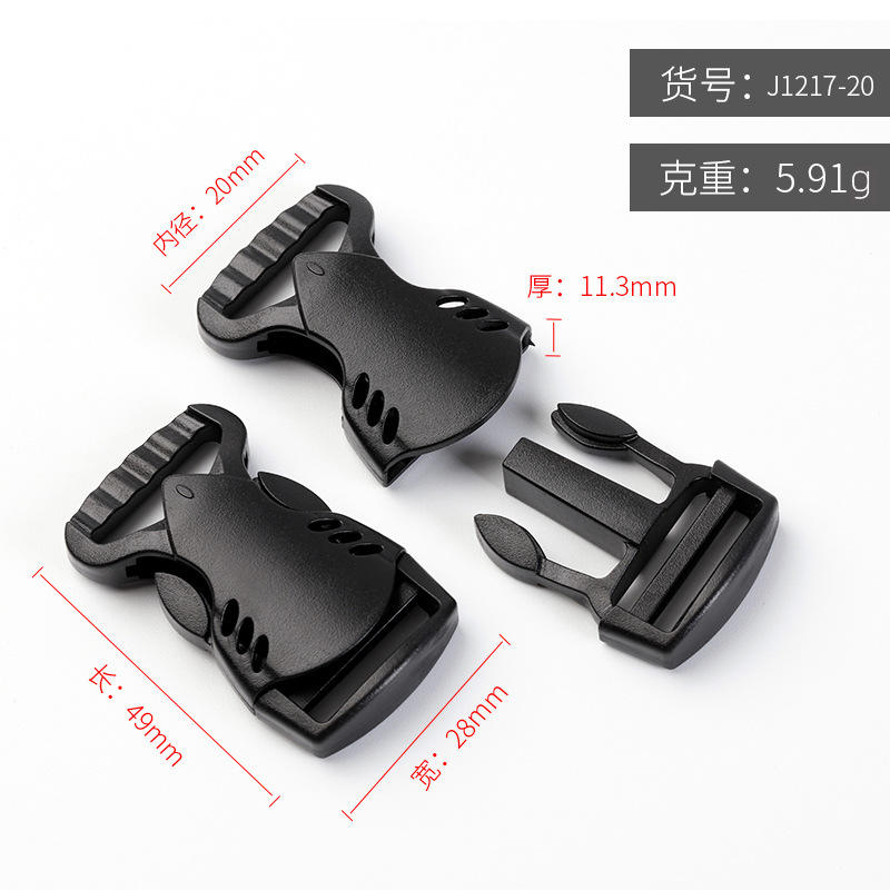 Hebilla de cinturón de plástico de 20 mm de diámetro interior, ajustable, color negro sólido, para mochilas y cierres de carritos