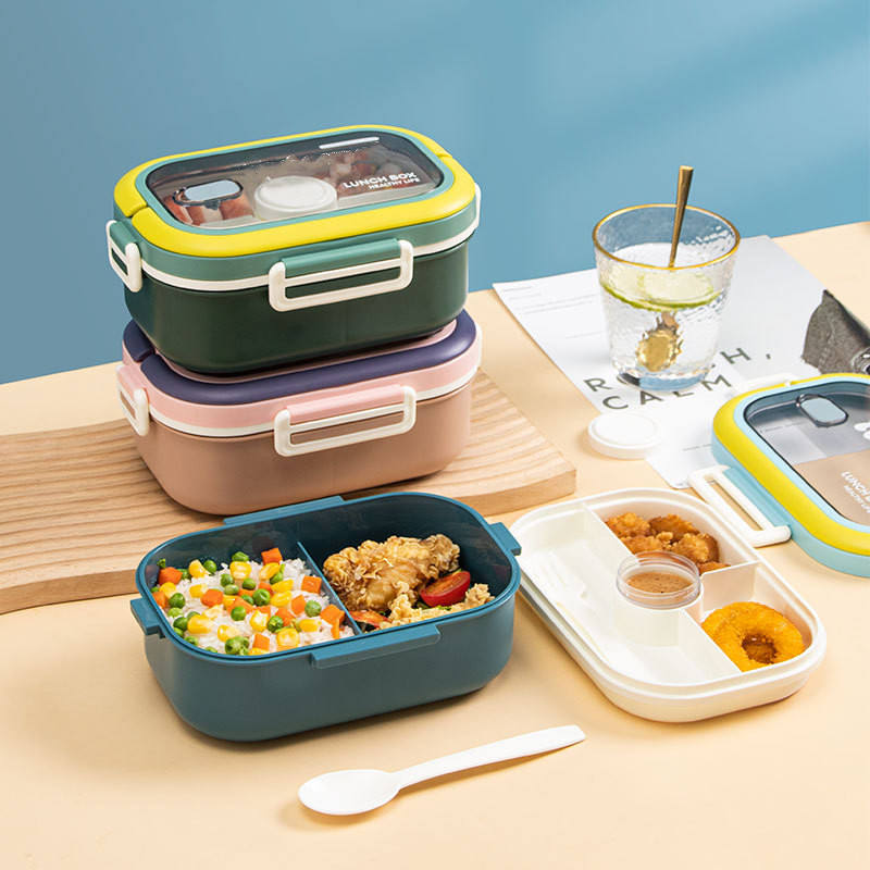 Nombre:Bento lonchera de plástico con cubiertos