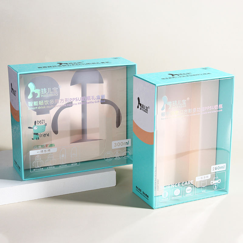 Fabricantes de cajas de plástico Caja de plástico transparente Embalaje con ventana visual Botellas para niños pequeños Caja de plástico de acetato rectangular