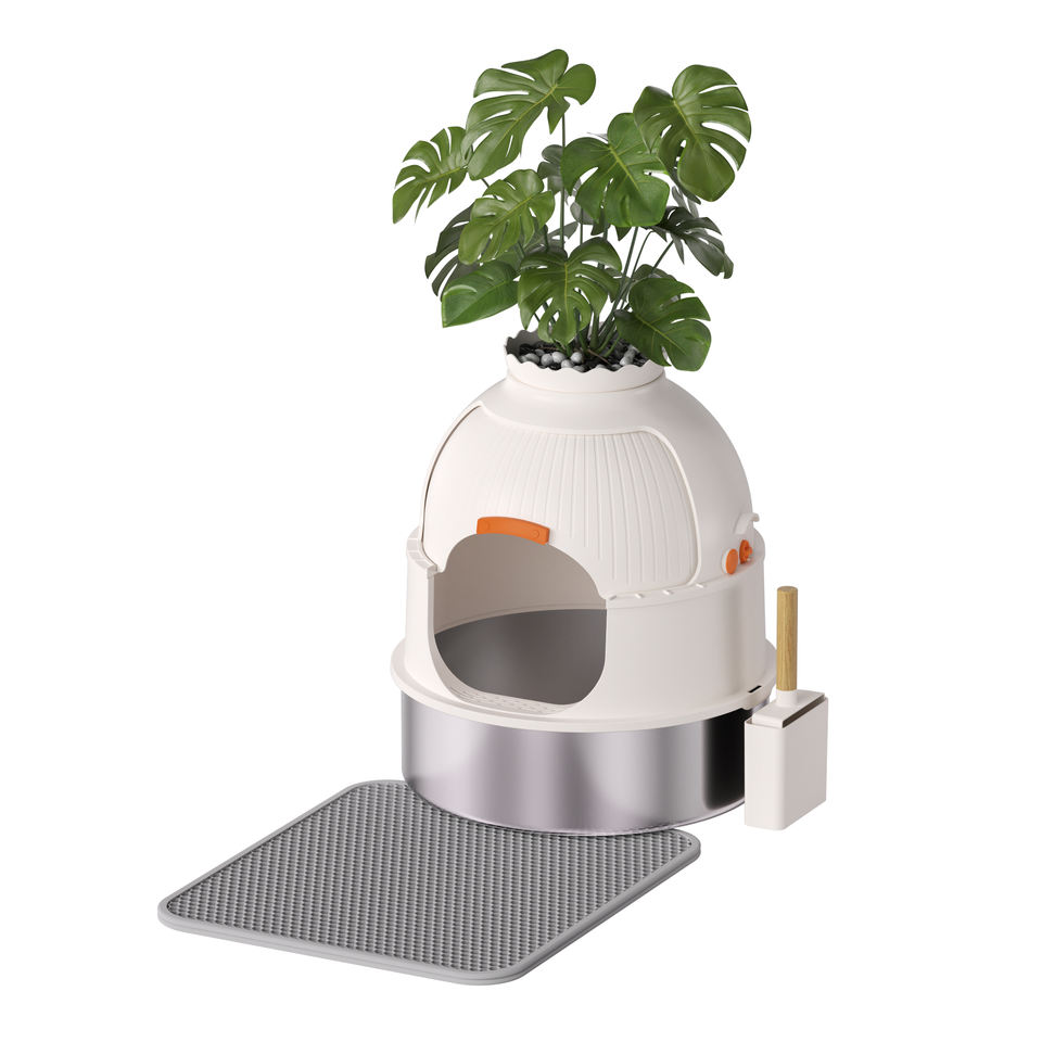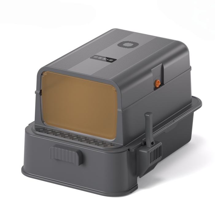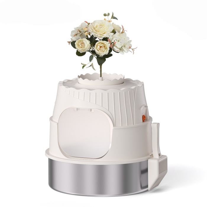 Caja de arena para gatos de plástico con tapa plegable a prueba de salpicaduras, entrada superior cerrada, hecha de arena y material PP