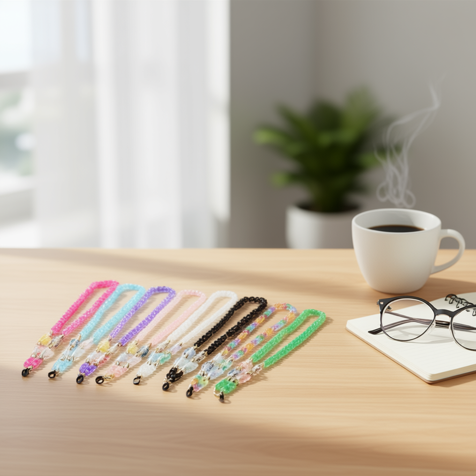 Cadena de plástico de 70 cm de ancho con cierre extragrande, correa para gafas tres en uno