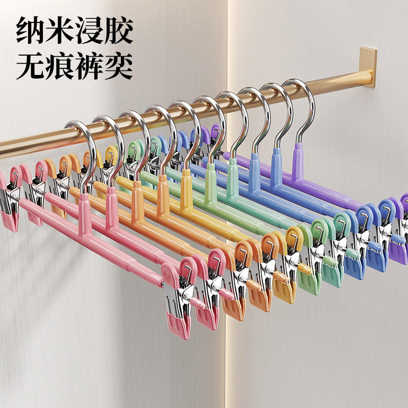Plastic Coated Trouser Hanger With Clips Non Slip Stainless Steel Clothes Organizer For Pants Skirts Storage Rack Hook Type